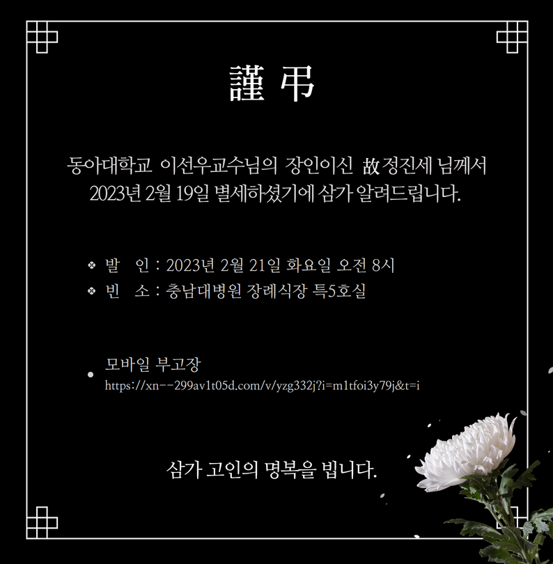 [부고] 이선우(동아대학교 교수) 회원, 빙부상