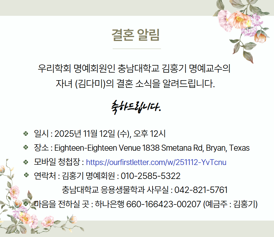 [결혼] 김홍기(충남대학교) 명예회원 자녀, 결혼식