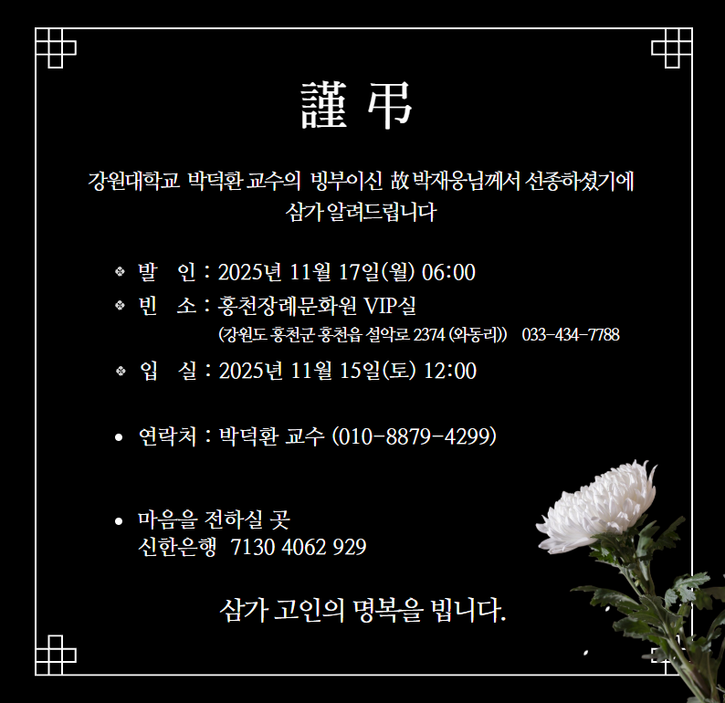 [부고] 박덕환(강원대학교 교수) 회원, 빙부상
