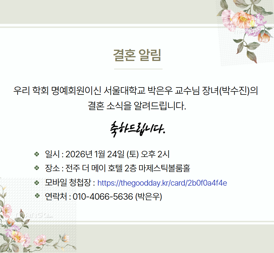 [결혼] 박은우(서울대학교) 명예회원 자녀, 결혼식