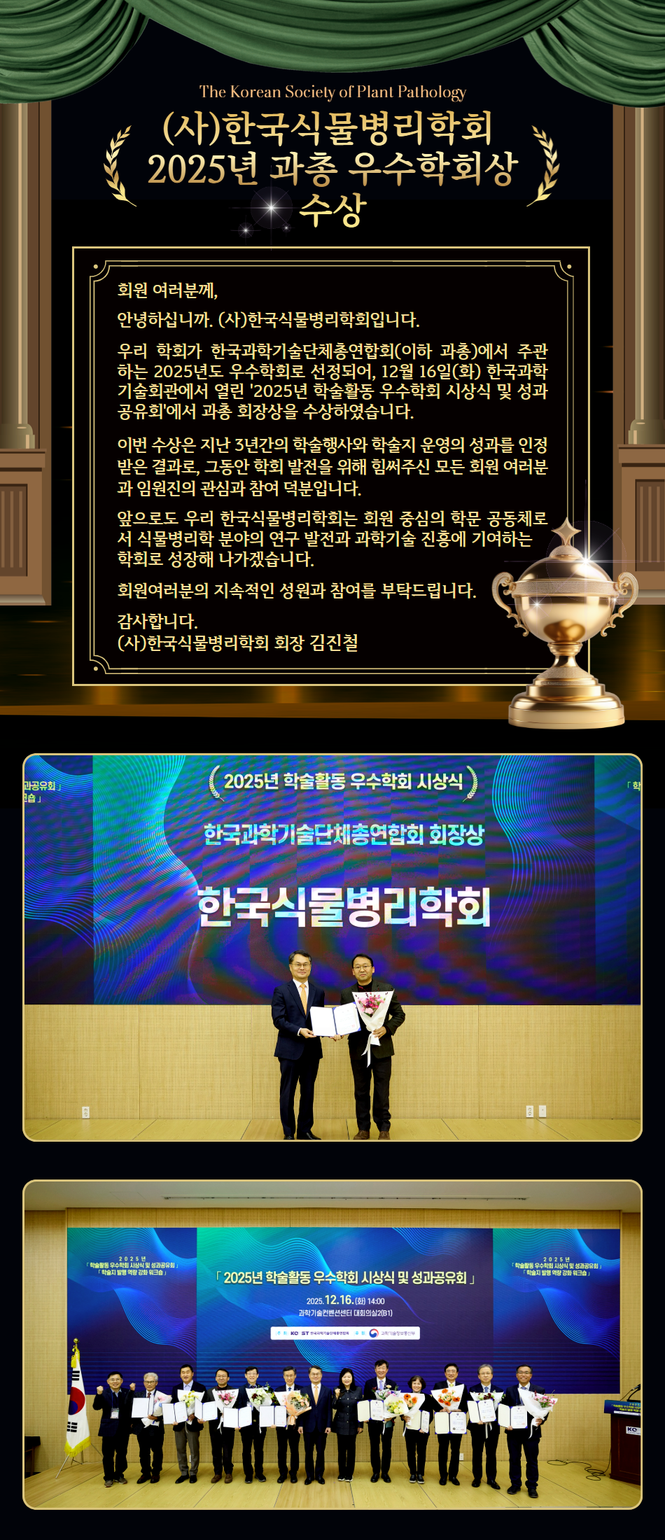 [공지] (사)한국식물병리학회, 2025년 과총 '우수학회상' 수상